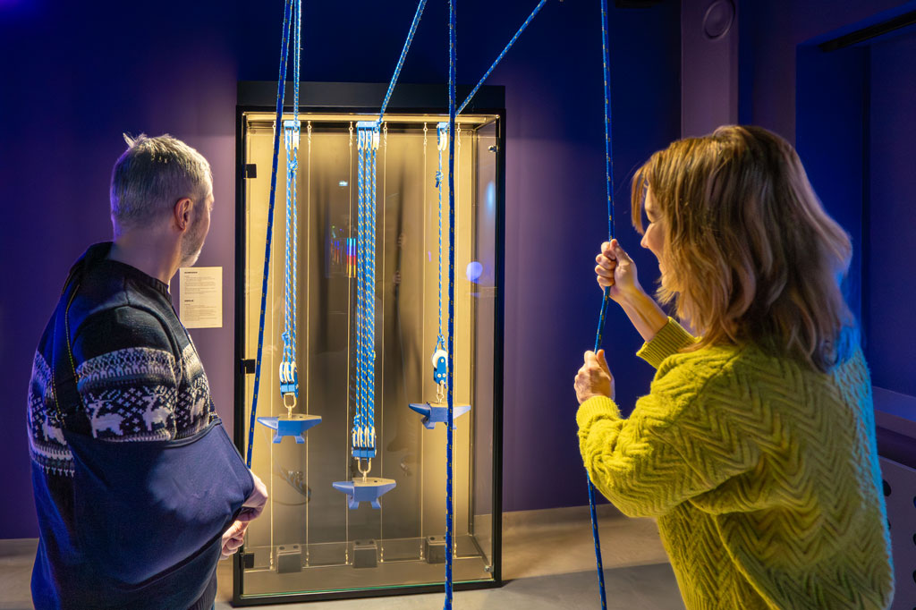 Hier wird Wissenschaft zum Abenteuer! Ein Besuch voller Bewegung, eigenständiger Experimente, Beobachtungen und Entdeckungen. Mit Hilfe der Exponate kann jeder und jede die Experimente der größten Gelehrten nachstellen und erfahren, wie eine der vier fundamentalen Naturkräfte funktioniert. Und das nicht nur auf der Erde, sondern auch im Weltraum, dem ein großer Teil der Ausstellung gewidmet ist. Da die Reihenfolge der Exponate der Chronologie der wissenschaftlichen Entdeckungen entspricht, wird der Besuch zu einer Reise durch die Geschichte der Wissenschaft, von Archimedes und Galileo Galilei über Isaac Newton und Albert Einstein bis hin zu Edwin Hubble.