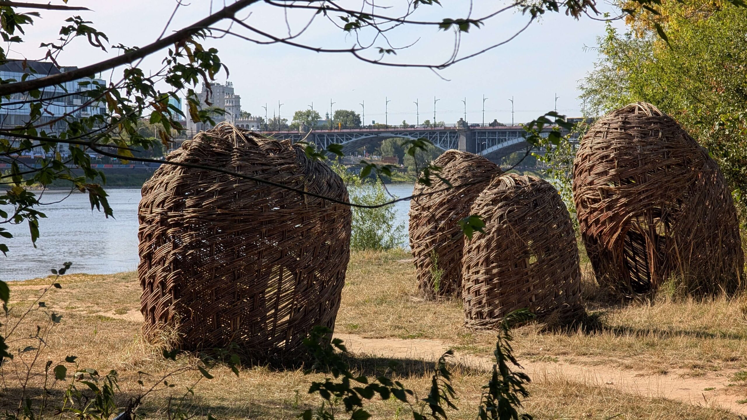 Podziwiając zabytkowe wieże z kamiennymi schodami, kontynuuję wędrówkę praską stroną Wisły, cieszą oczy zielone aleje. Mijam plażę ozdobioną artystycznymi, wiklinowymi rzeźbami naprzeciwko wejścia do Portu Czerniakowskiego. Przez plażę Saską dochodzę do Mostu Łazienkowskiego, który przeprowadza mnie na drugą stronę rzeki.
