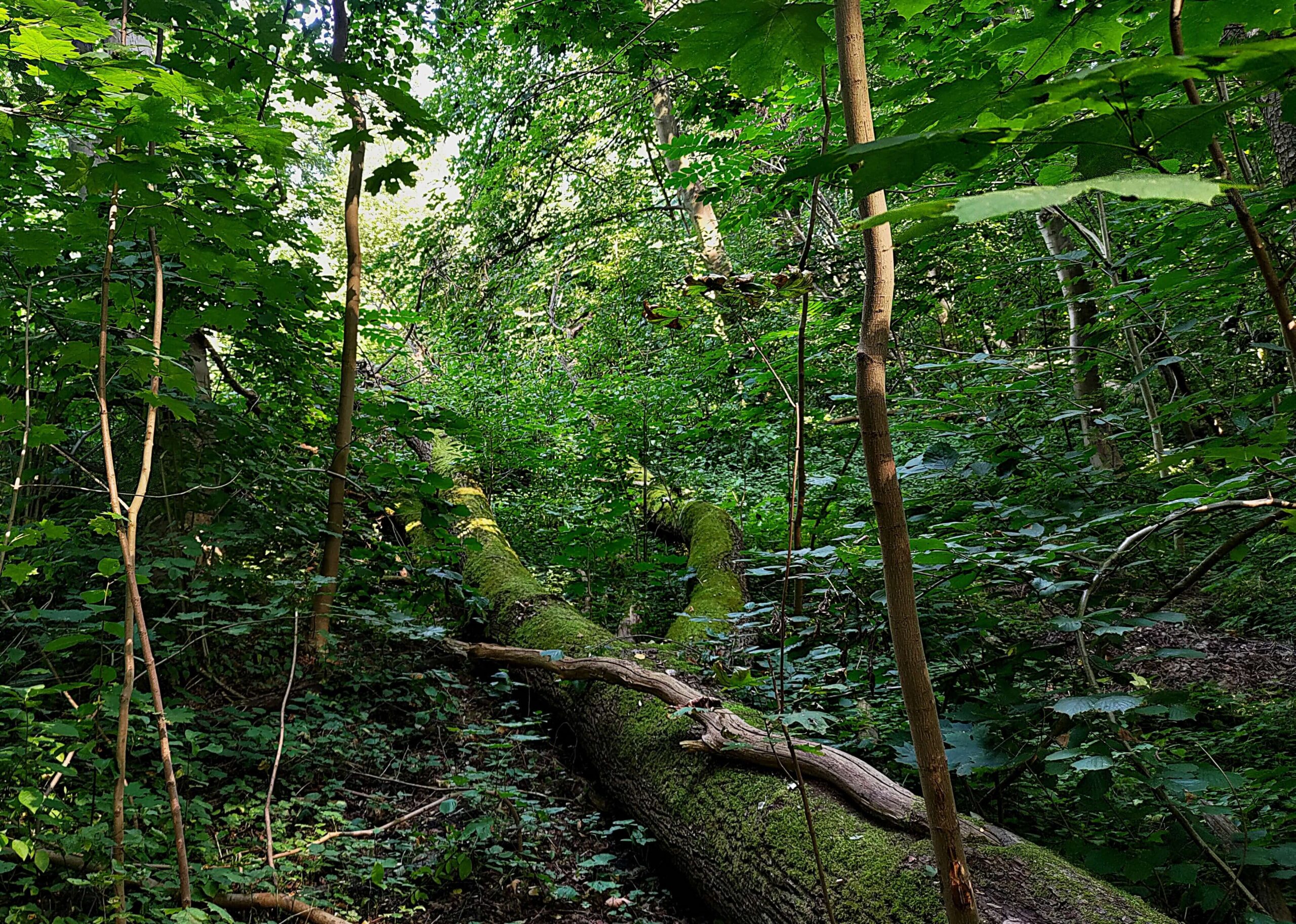 Następnie obok Muzeum Kowalstwa skręcamy w ścieżkę Przy Grobli, a po przekroczeniu ulicy Arbuzowej idziemy wzdłuż kanałku równolegle do ulicy Rzodkiewki. Jest tu sielsko jak na wsi. Na wysokości mogiły powstańców warszawskich [3] (opcjonalnie można wydłużyć spacer np. do ul. Prymasa Augusta Hlonda) skręcamy w prawo, gdzie czeka na nas gęsto zalesiona Skarpa Ursynowska [4].
